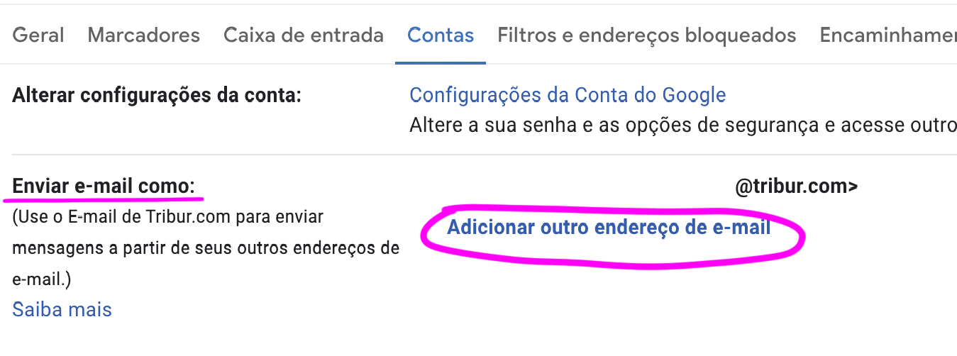 No subgrupo: "Enviar e-mail como:" clique em Adicionar outro endereço de email